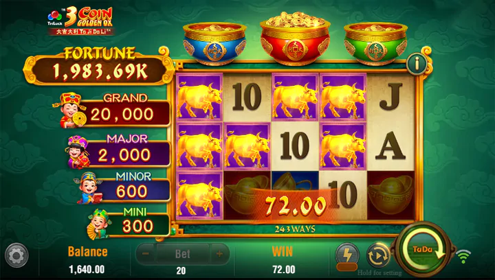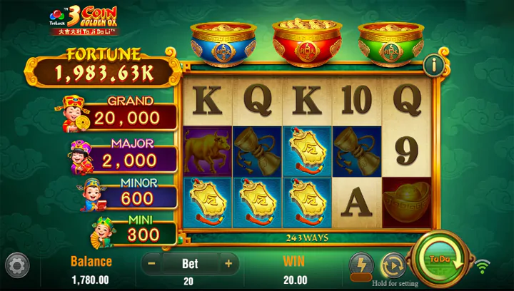 การเล่น สล็อต 3 Coin Golden OX นั้นเรียบง่ายแต่เต็มไปด้วยกลยุทธ์ เหมาะสำหรับกลุ่มเป้าหมายทุกวัยที่ต้องการความสนุกโดยไม่ซับซ้อน เกมใช้โครงสร้างรีล 5×3 แถว กับ 243 ทางชนะ (ways to win) ซึ่งหมายความว่าคุณไม่ต้องกังวลเรื่อง paylines แบบเก่า แต่ให้สัญลักษณ์ตรงกันจากซ้ายไปขวาในตำแหน่งติดกันเท่านั้น