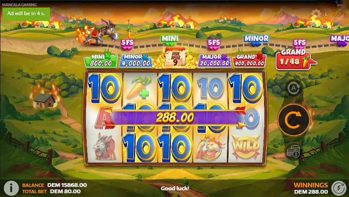 หนึ่งในจุดเด่นที่ทำให้ สล็อต Bonkey Donkey โดดเด่นคือธีมฟาร์มสุดสดใสที่เล่าเรื่องราวการผจญภัยของลิงล้อ (Bonkey) ที่ขโมยแครอทจากกระต่ายโกรธเกรี้ยว! ลองนึกภาพรีล 5×3 ที่เต็มไปด้วยพืชผลเขียวขจี ท้องฟ้าสดใส และตัวละครการ์ตูนน่ารักๆ ที่เคลื่อนไหวได้อย่างมีชีวิตชีวา กราฟิก HD สีสันสดใสผสมกับเอฟเฟกต์เสียงเพลงพื้นบ้านเบาๆ ทำให้รู้สึกเหมือนกำลังเล่นในสวนหลังบ้านจริงๆ