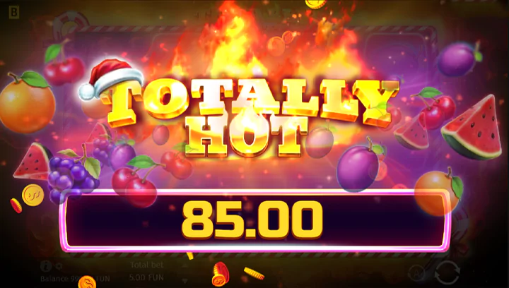 Totally Hot ใช้ธีม “ไฟกำลังลุกไหม้” แบบเต็มสูบ พื้นหลังเป็นเปลวไฟสีแดง-ส้มที่กำลังพุ่งขึ้นอย่างต่อเนื่อง สัญลักษณ์ต่างๆ ถูกออกแบบให้มีขอบไฟลุกโชนตลอดเวลา แม้แต่สัญลักษณ์ผลไม้คลาสสิกอย่าง เชอร์รี่ เลมอน แตงโม องุ่น ก็ยังมีเปลวไฟลุกท่วมจนดู “ร้อนแรง” มากกว่าเดิม 10 เท่า!
